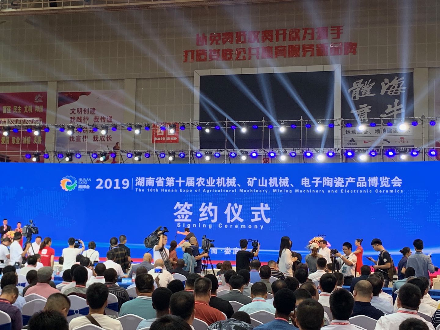 2019年9月17日湖南省第十屆“湘博會”在婁底市體育中心成功舉行。湖南省人民政府副省長何報翔,婁底市委書記、市人大常委會主任李薦國,市委副書記、市長楊懿文等領導參加了活動。海螺創業總經理紀勤應、海螺水泥副總經理李群峰應邀參會。
