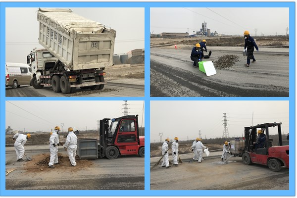 ? ? 28日下午3點,演練準時拉開帷幕,整個演練圍繞危險廢物泄露、檢測、處置、清理展開,模擬危廢經營單位一輛拉運污泥的車輛在廠區后門口處,后車門脫鉤污泥泄露在路邊,可能危及到周邊河流的水質安全,需要及時處置的情景。富平縣環保局接到報告后啟動《富平縣突發環境事件應急預案》,并聯合我公司組織人員趕赴現場,展開應急監測、處置,現場排除污染事故。