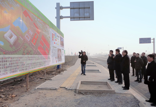 ? ? 2014年元月15日上午,安徽省副省長(zhǎng)方春明率省政府辦公廳副主任劉衛(wèi)東一行在亳州市市長(zhǎng)沈強(qiáng)、亳州蕪湖現(xiàn)代產(chǎn)業(yè)園區(qū)管委會(huì)有關(guān)領(lǐng)導(dǎo)的陪同下,視察了亳州海創(chuàng)新型節(jié)能建筑材料公司CCA項(xiàng)目施工現(xiàn)場(chǎng)。中國(guó)海螺創(chuàng)業(yè)控股有限公司副總經(jīng)理李劍、亳州海創(chuàng)新型節(jié)能建筑材料公司副總經(jīng)理章嗣福等熱情接待了方副省長(zhǎng)一行。