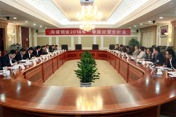 ??? 2014年4月18日,海螺創業在海螺國際會議中心582會議室召開一季度生產經營分析會,會議由紀勤應總經理主持,公司領導郭景彬、李劍、李大明、汪學森、朱忠平及相關部室、子公司主要負責人約20余人參加了會議。