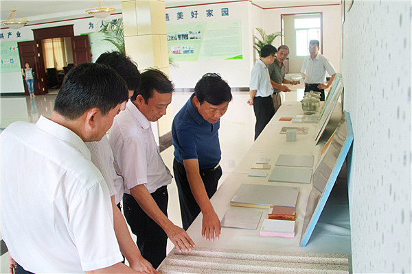 ? ? 在公司產品應用展廳區域,紀總向余副主席一行介紹了纖維水泥板及其后加工延伸產品樣品有關情況。