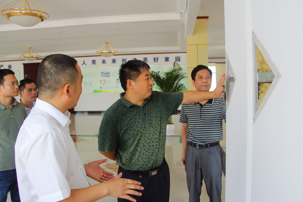 ? ? 2015年9月9日,安徽省墻體材料革新建筑節能辦公室(省墻改辦)主任楊全城一行,在安徽省江北集中區管委會副主任陽小玲、蕪湖市經信委總工程師陳傳宏等的陪同下,到安徽海創新材料公司考察調研。