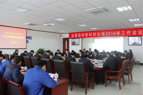? ? 2016年2月1日,安徽海創(chuàng)新材料公司2016年度工作會議在辦公樓二樓會議室召開,公司經(jīng)營班子、中層管理及業(yè)務(wù)骨干人員共42人參加了會議,海螺創(chuàng)業(yè)公司董事長郭景彬、副總經(jīng)理李劍到會并提出工作和管理要求。