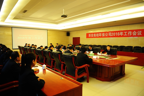 ? ? 為認真貫徹海螺創業2016年度工作會議精神,總結2015年工作,?剖析存在問題和不足,分析經濟新常態下的經營形勢,更好謀劃2016年工作,2月23日下午,堯柏環保公司隆重召開2016年工作會議。機關全體員工、藍田、富平項目部主管以上人員共30人參加會議。海螺創業副總經理李大明、運營管理部部長汪俊賢出席會議。