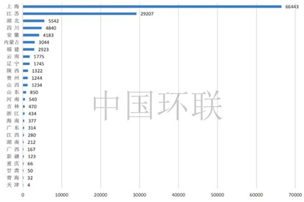 ? ? 根據2018年中國統計年鑒,2017年各省市工業污染治理投資中治理固體廢物完成情況如下。其中上海、江蘇、湖北排名全國前三。上海、江蘇、安徽、福建、湖北、四川和云南治理固體廢物完成情況占比超過國家均值2%。