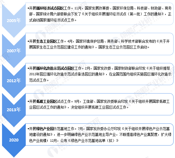 從政策角度來看,早在21世紀初開始,國家發改委、工信部、環保部等部委紛紛開展綠色類產業園區創建活動,隨后生態工業園、循環化改造園、低碳工業園等工作相繼展開,具體如下:
