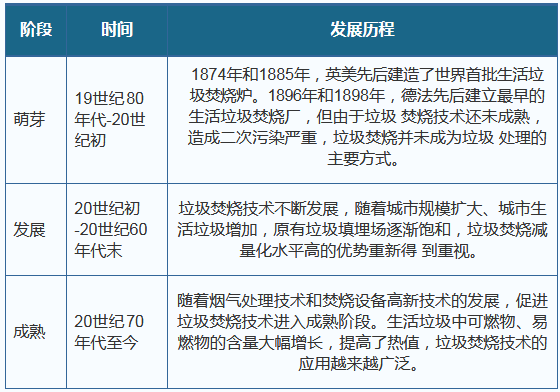 垃圾焚燒行業(yè)發(fā)展歷程?