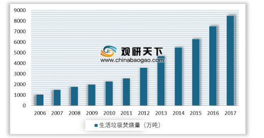 2006-2017年我國(guó)生活垃圾焚燒量
