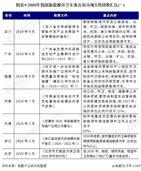 為推動(dòng)新能源汽車的普及程度,國(guó)家和地方計(jì)劃通過鼓勵(lì)在環(huán)衛(wèi)等公共領(lǐng)域用新能源車以形成示范作用,2020年以來(lái)新能源環(huán)衛(wèi)車產(chǎn)業(yè)驅(qū)動(dòng)政策密集出臺(tái),力度強(qiáng)且規(guī)劃明確。