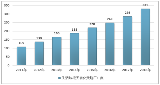 2011-2018年中國生活垃圾無害焚燒廠數(shù)量規(guī)模
