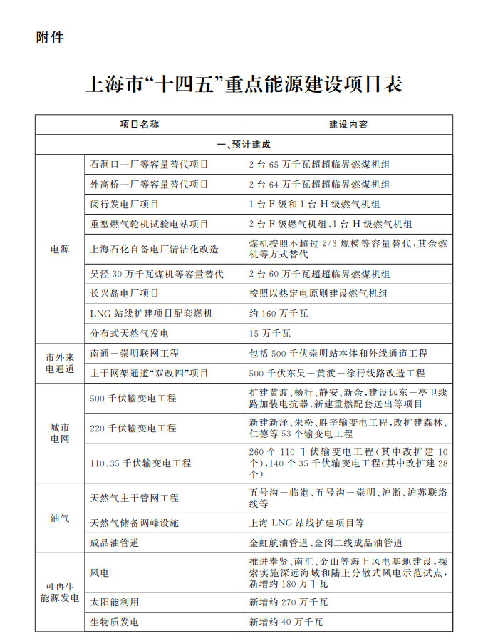 上海市能源發展“十四五”規劃