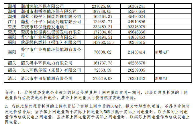 廣東省發展改革委關于公布有關垃圾焚燒發電企業2021年下半年垃圾處理量及相關電量的通知