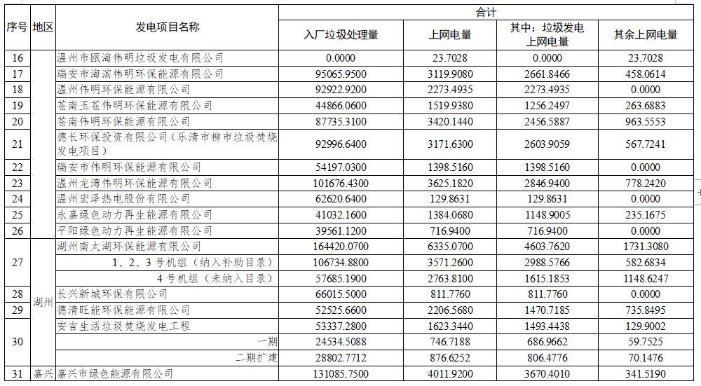 日前,浙江發布關于核定垃圾焚燒發電項目2022年1-3月垃圾發電上網電量等事項的通知。詳情如下: