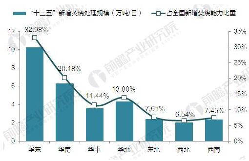 ? ? “十三五”中國(guó)垃圾焚燒發(fā)電能力區(qū)域分布