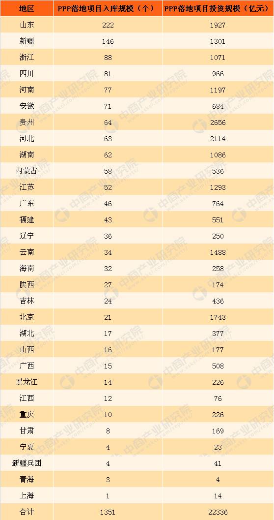 ? ? 截至2017年9月末,全國入庫項(xiàng)目合計(jì)14220個、投資額17.8萬億元,包括識別、準(zhǔn)備、采購和執(zhí)行階段項(xiàng)目,無移交階段項(xiàng)目。其中,準(zhǔn)備、采購和執(zhí)行階段項(xiàng)目合計(jì)6778個,納入管理庫,總投資10.1萬億元。按PPP管理庫地區(qū)項(xiàng)目數(shù)排序,前三位是山東(含青島)、河南、內(nèi)蒙古,項(xiàng)目數(shù)合計(jì)占入庫項(xiàng)目總數(shù)的27.2%;湖南、貴州、云南投資額居前三位,分別為8160億元、7742億元、7468億元,合計(jì)占同口徑全國總投資的23.1%。