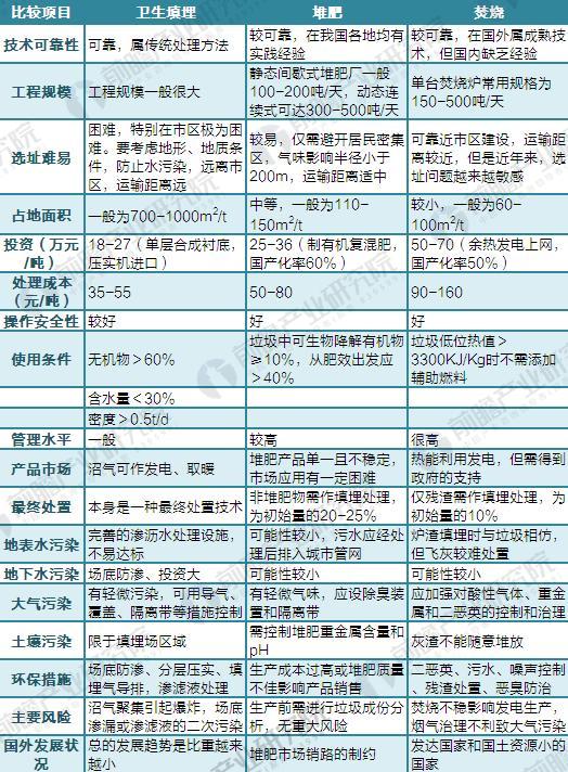 圖表1:三種主要垃圾處理方式對(duì)比