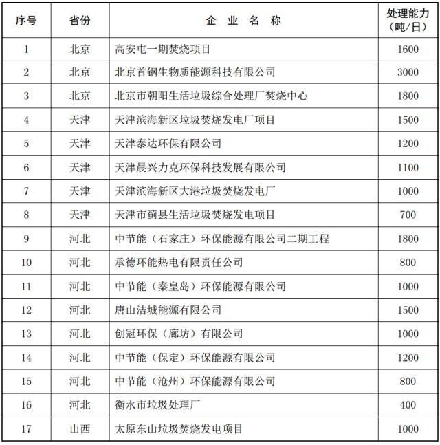 2016年底全國(guó)在運(yùn)生活垃圾焚燒發(fā)電廠清單