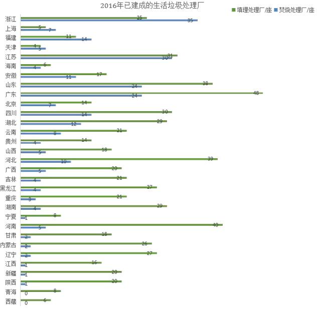 ? ? 根據中國統計局2016年的數據顯示,我國已建成的生活垃圾衛生填埋無害化處理廠657座,焚燒無害化處理廠249座,占比分別為73.3%和27.8%。