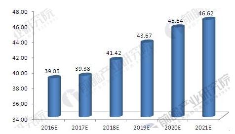 2016-2021年中國工業固體廢物產生量情況預測(單位:億噸)