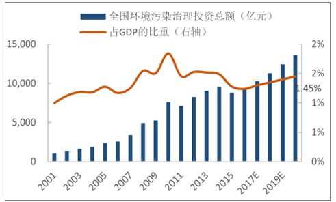 “十三五”期間全國環境污染治理投資額逐漸攀升