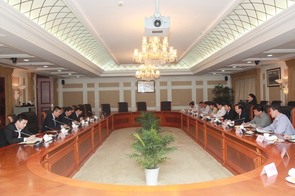 ? ? 簽字儀式前,紀(jì)勤應(yīng)總經(jīng)理會見藍(lán)大煌書記一行。
